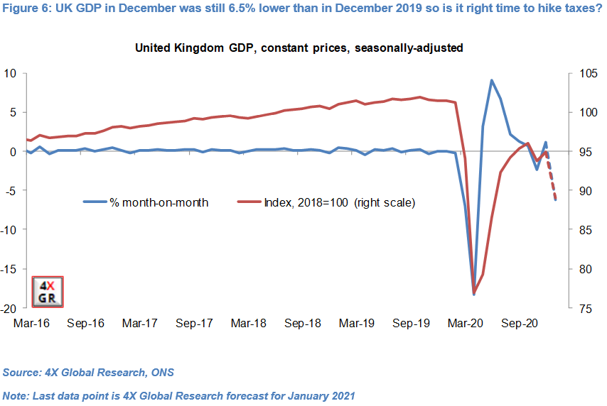 However, expect Sunak to confirm both a (temporary) extension of Covid-19 related fiscal measures to support the economy during lockdown as well as modest tax hikes regardless of the government’s very low financing costs, in line with our September forecast