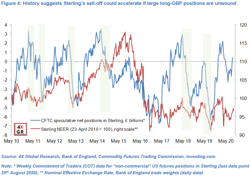 This leaves Sterling vulnerable, in our view, particularly in the context of relatively elevated long Sterling speculative positions.